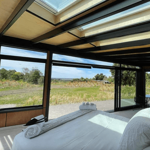 Set amongst native plants with magical birdsong overlooking Geraldine, this unique luxurious retreat will leave you both feeling connected and relaxed.