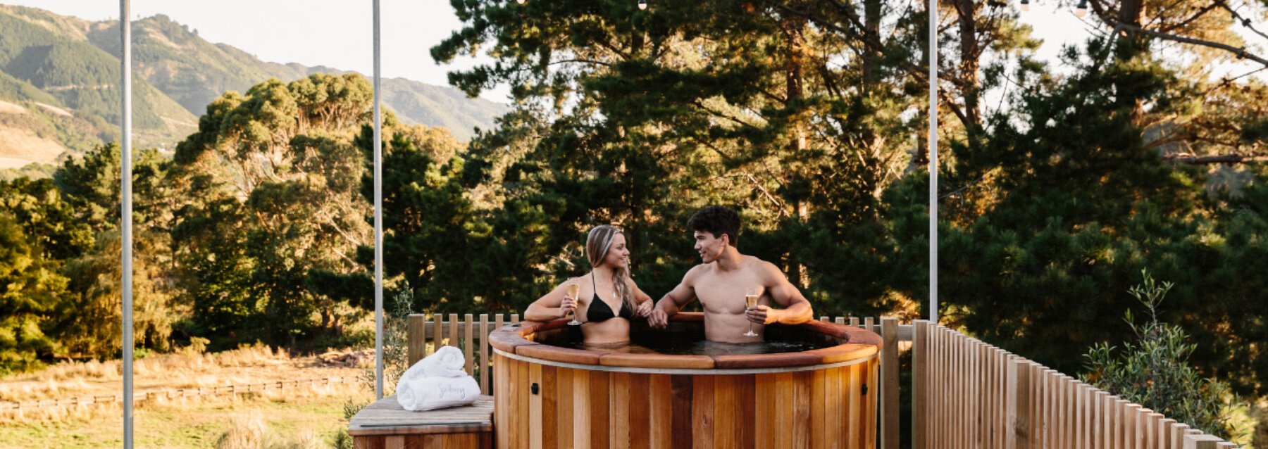 Additional extras include cosy fireside treats (premium Wellington Chocolate Factory hot chocolate, soft ginger loaf and a DIY s'mores kit) best enjoyed under the stars, a gourmet Angel hamper, weekend e-bike hire and a local Kiwi encounter.