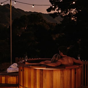 Imagine soaking away the stresses of everyday life in your very own outdoor hot tub on the deck while sipping on a glass of bubbles.