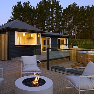 The cottage has been styled around a Japandi theme and is both elegant and cosy with clean lines, high end furnishings and your very own Summer house with outdoor fire and cedar hot tub for the ultimate in relaxation.