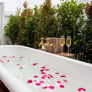 Mightly Matamata offers a secluded alfresco dining space, romantic outdoor clawfoot bath that is nestled within a private courtyard off the bedroom. Inside your cottage, air-conditioning, spacious dining and lounge area and a separate bedroom with ensuite along with Wifi and many other special features.