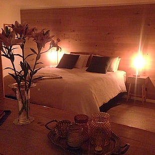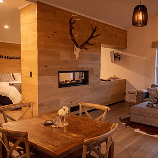 With a double sided fire between the lounge area and the bedroom, candles and the modern but yet warm wooden ambiance of this luxury new cottage creating the perfect spark.