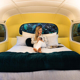 This Romantic package includes one nights accommodation in a private, riverside converted bus, a delicious 3 course Farm-To-Table style meal (freshly prepared with slow cooked meat (or vegetarian option) and seasonal vegetables and home grown herbs. Includes a starter and a home made dessert and a glass of wine or beer each) and your choice of anything from the breakfast menu the following morning. Also included is a 45min session in either the spa or sauna.