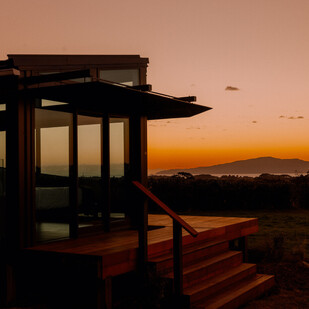 Just an hour north of Wellington, with stunning views of Kāpiti Island, the cabin sits in a quiet spot on a beautiful grapevine nursery high above the Kāpiti Coast.