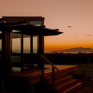 Just an hour north of Wellington, with stunning views of Kāpiti Island, the cabin sits in a quiet spot on a beautiful grapevine nursery high above the Kāpiti Coast.