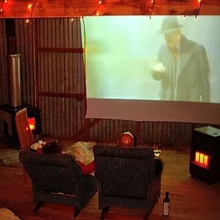 As well as twin outdoor bath tubs, a snuggle couch on the veranda and a roaring fire inside, this special venue also boasts a private movie theatre! Just imagine strolling over to the woolshed with your favorite DVD (bring a couple with you) and treats, lighting the log fire and getting comfy under the blankets on the couch to watch a movie through the projector onto the big screen.