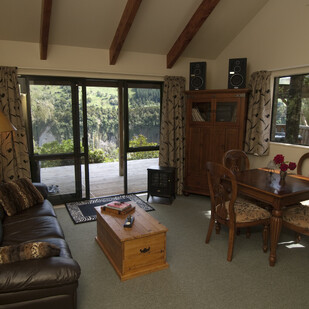 Facilities include an air bath with a Romantic view of the river below, a fully equipped kitchen, second bedroom, laundry facilities, lounge and bbq on your very own private deck.