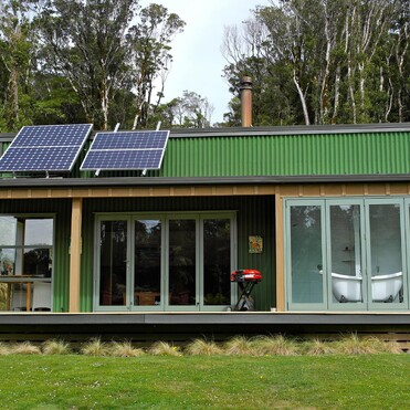 The cabin is powered by solar panels and includes an oven with a wetback which is perfect for filling the stunning bath with an outlook into the bush and the night sky. Meals can be cooked using the studio oven or there is a gas hob.
