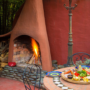 Wood fire in courtyard