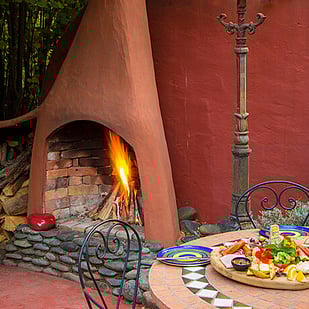 Wood fire in courtyard