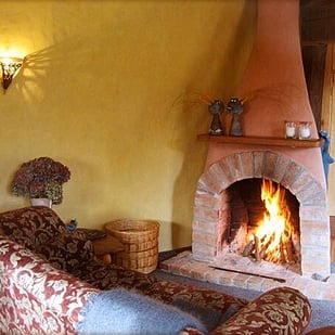 Cozy up together on the lovers couch in front of the open fire