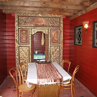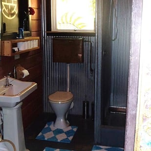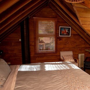 Your king sized bed awaits upstairs while downstairs you can enjoy the rustic comforts with modern facilities including a fully equipped kitchen. The living/dining rooms contain a bar, freeview TV/DVD, records and CD’s and potbelly fire. With wrap around verandahs, BBQ and fire-pit you have everything you need for a Romantic cuddle under the stars. Wireless internet access is available as are access to laundry facilities.